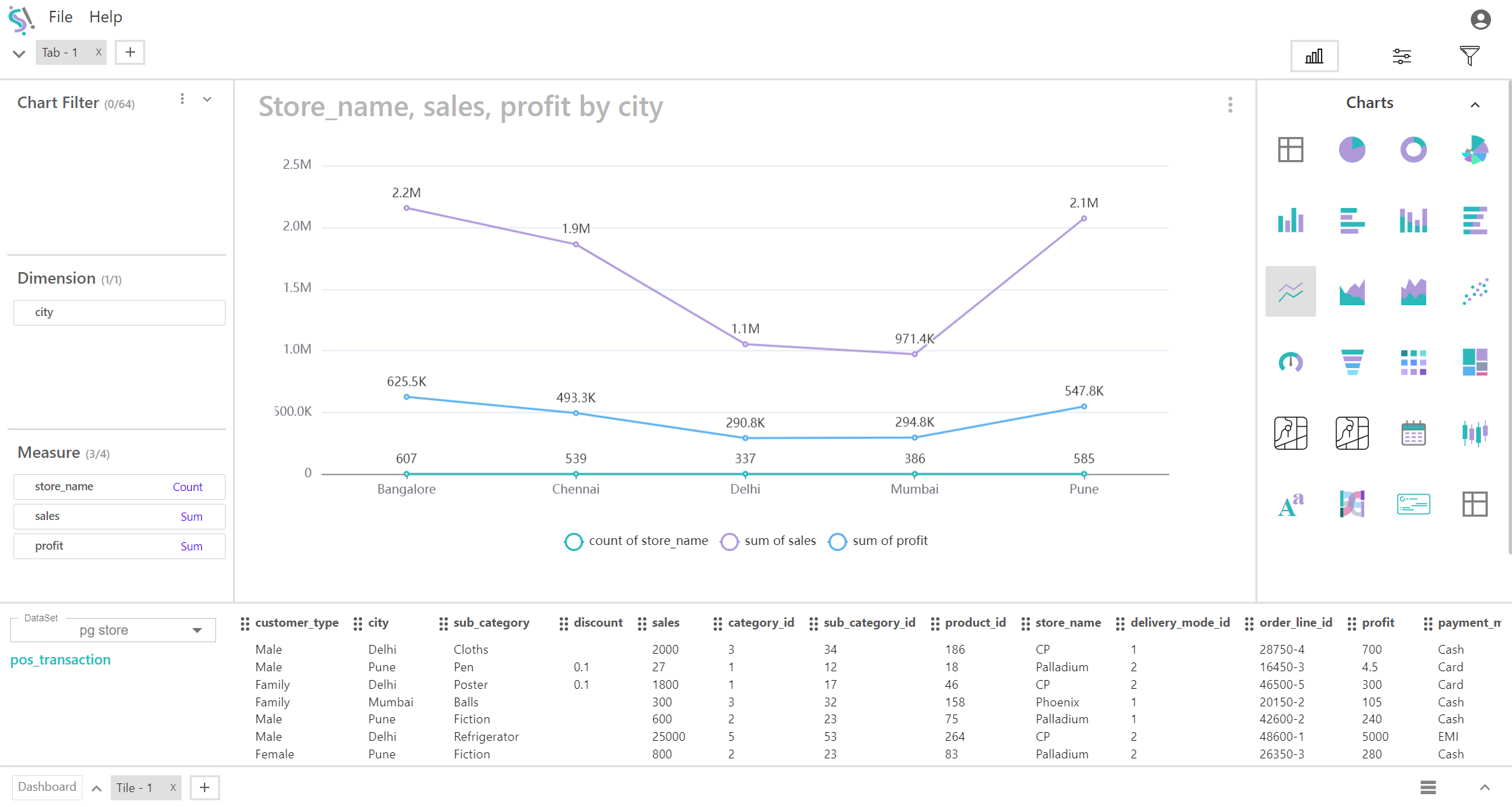 2. Represents the numerical values plotted along the Y-axis. Reflects different sets of data points that are plotted as individual lines. Each line represents a measure, allowing you to track and compare these measures across the dimension.
