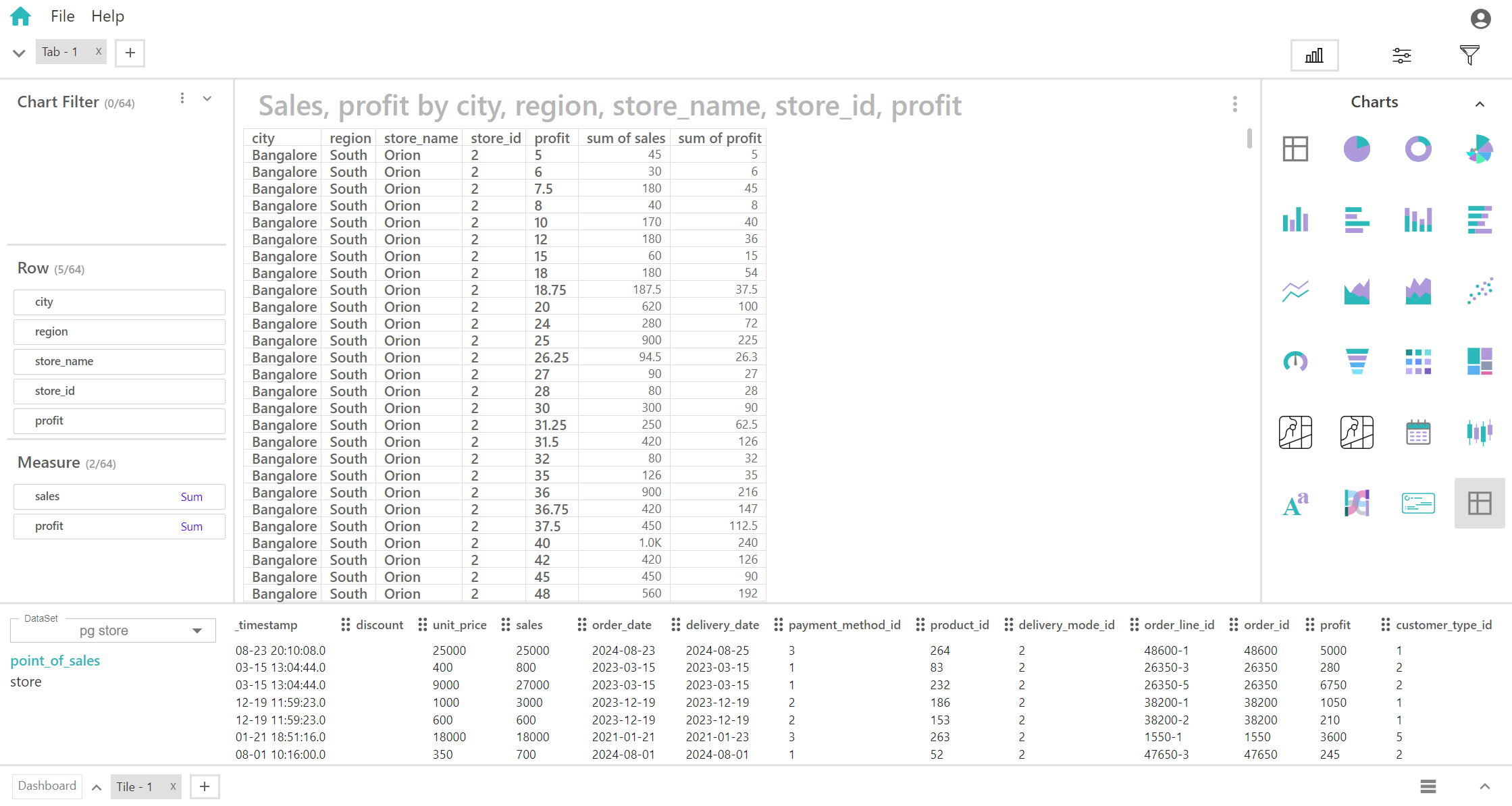 •  Sum of Sales, Average of Profit, Order date, Delivery Date.
